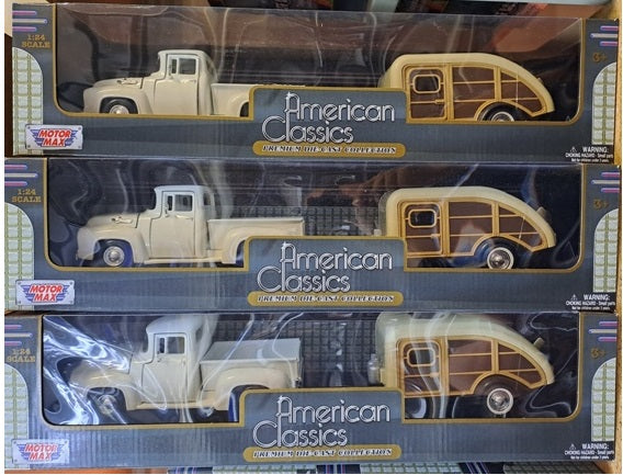FORD F-100 PU WITH CARAVAN SET WHITE 1956 1/24 EACH, DIECAST CAR, COLL | Morethandiecast.co.za